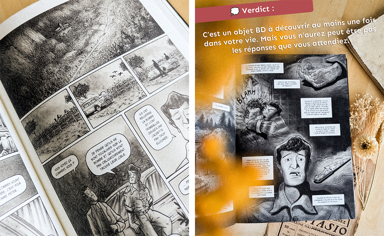Planche de God Bless America mettant en avant le personnage principal dans un moment introspectif, soulignant l’atmosphère sombre et le traitement graphique détaillé du roman graphique.